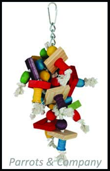 • Hanging Thimbles is a fun toy that presents parrots with numerous challenges